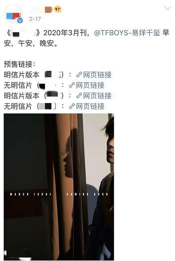 其三,采访。在一段网友扒出的采访中,易烊千玺表示自己不经常发朋友圈,上一个朋友圈还是9月份、10月份发的。据悉,这段杂志采访于3月1号正式发布,但2月17号该杂志就发布了预售链接。