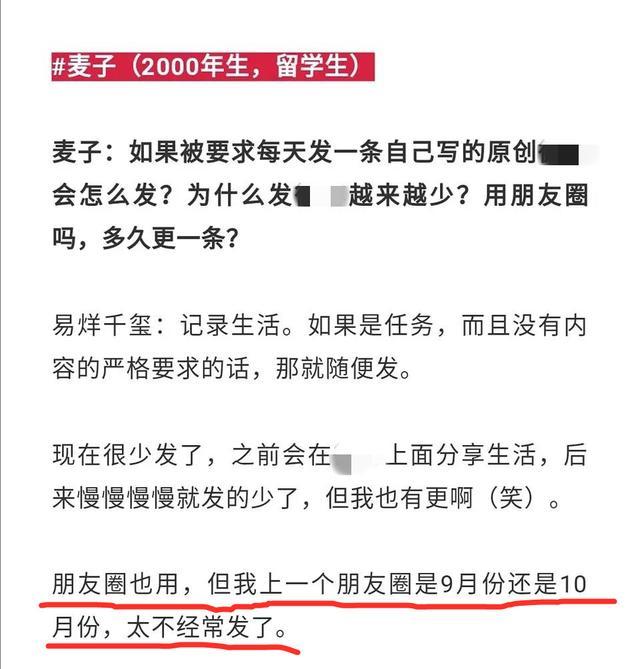 其五,多方论证。有网友表示自己朋友和易烊千玺去年9月份军训时加了好友,当时朋友给他发的易烊千玺朋友圈图片与如今曝光的朋友圈内容吻合。