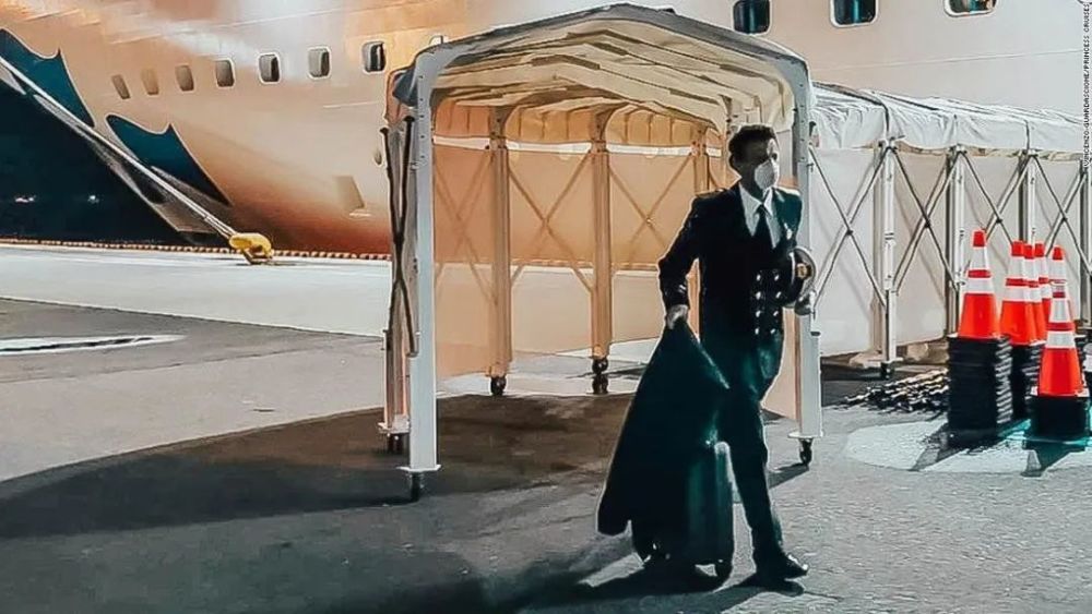 乘客在2月19日到27日陆续下船。他们要穿过一条蓝色密封通道,和启程时有欢送乐队不同,当他们再次踏上横滨时,港口迎接他们的是白色救护车、绿色灾害派遣卡车,以及扛着摄像机的新闻记者。