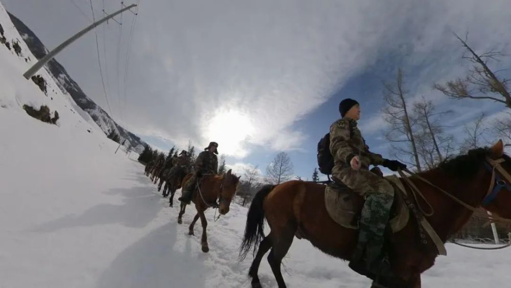 尽管已是仲春时节,但有着“西北第一哨”之称的白哈巴边防连依然被冰封雪裹,有的地方积雪更是深达1米。春寒料峭中,边防官兵又一次骑马踏上冰雪巡逻路。
