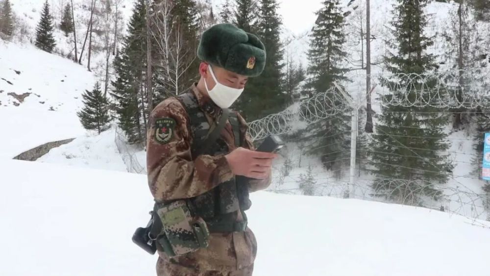 经过7个多小时的艰难跋涉,翻过最后一个陡坡,官兵们快马加鞭,到达巡逻的终点--哈图,通信员用北斗卫星向连队发送了巡逻和边境情况。