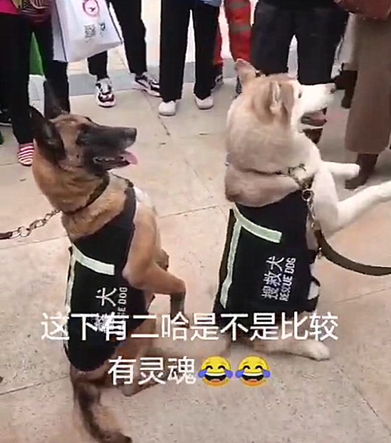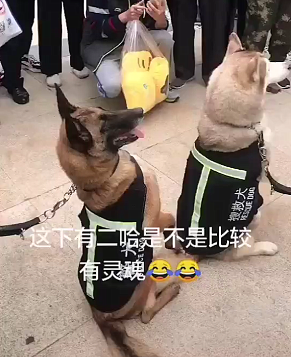 兽医小明看到这只二哈的时候,也是有些吃惊,没想到二哈竟然能够当上工作犬,毕竟它都能和敌人达成共识,想必训练这只狗狗的人一定很厉害吧!
