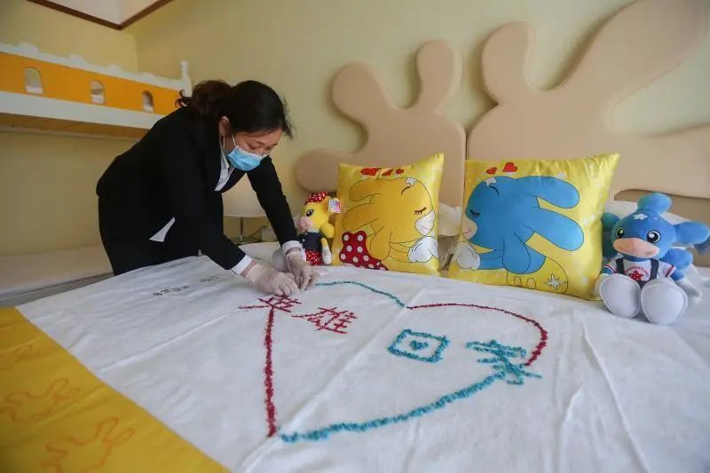 知道医护人员们要入住发现王国酒店,我们也是想为他们打造一些更暖心的服务,让他们在归来的时候,能够满满的感动。我们在每个房间准备了酷乐、酷啦咪玩偶,让他们感受到发现王国可爱主人公的热情。