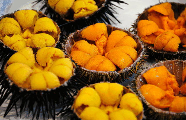 当季新鲜的螃蟹、鲍鱼、海胆、海参,