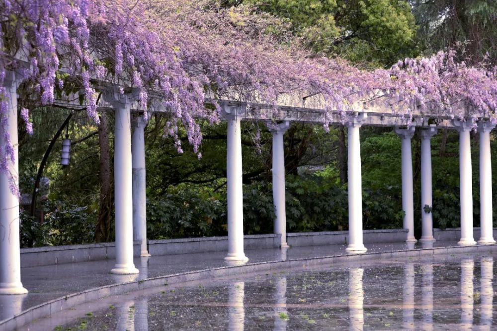 这就是雨中的紫藤花