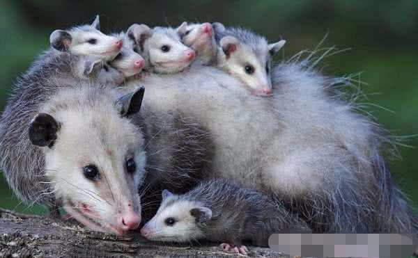 负鼠妈背负15只鼠宝外出兜风,一只差点摔死幸亏兄弟帮忙,惊险