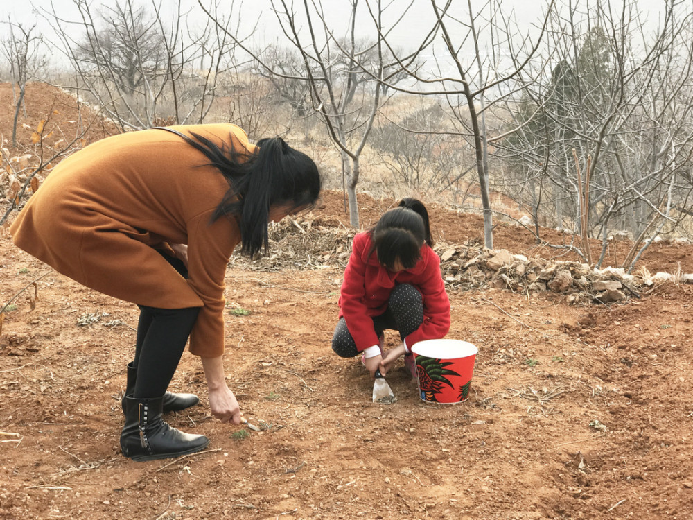从家中找个塑料袋,一把花铲,还有纸花桶,全家人避开人流的山野踏青之行开始了。