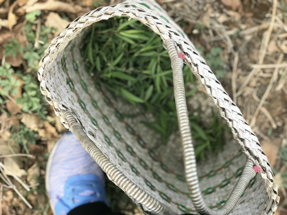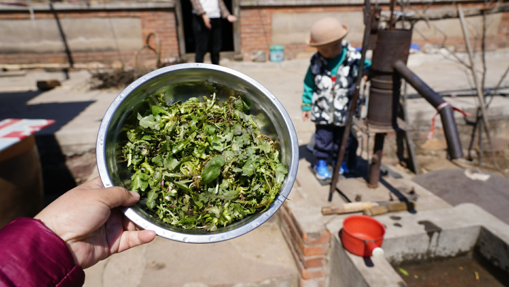 一位50岁大姐说,她家住山脚下,早上上学前也要跑山上给猪采点野菜去,要不家里养的一头猪一天没口粮。周末时,她都是一口袋一口袋往家采,半天能采两口袋。