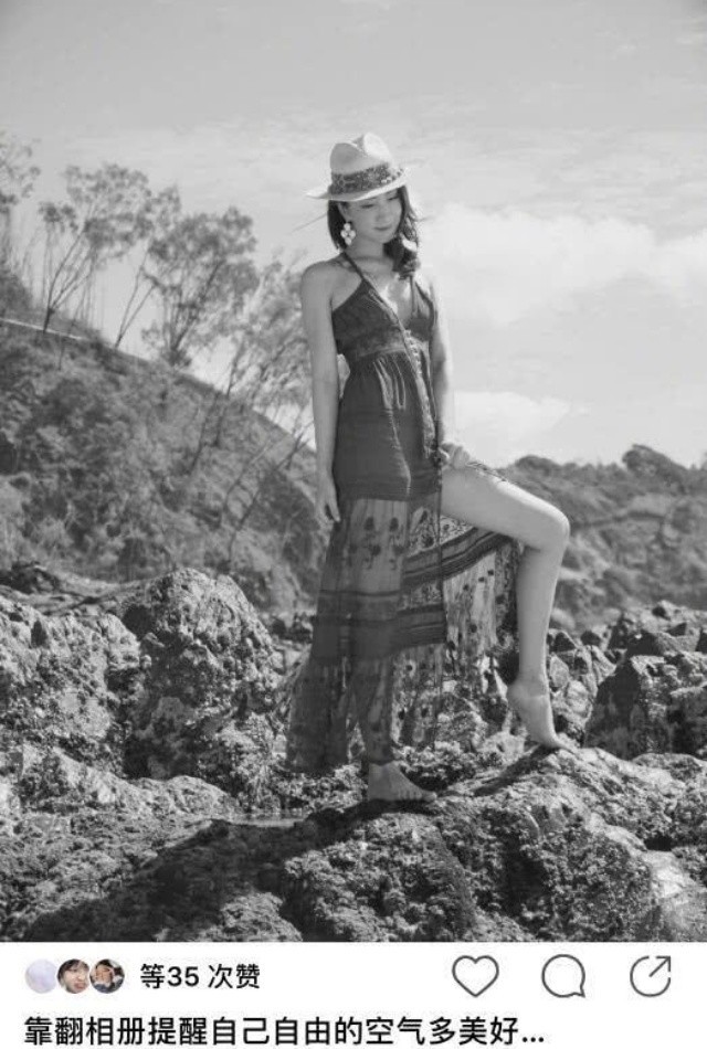 困在家门的许婧4月10日晚在社交平台晒出一张昔日旅游途中的清凉照,贴文称“靠翻相册提醒自己自由的空气多美好”。照片中,许婧身穿吊带连衣裙,赤脚站在石头上,毫不吝啬展示自己傲人的事业线和一双细白的大长腿,性感不失妩媚。