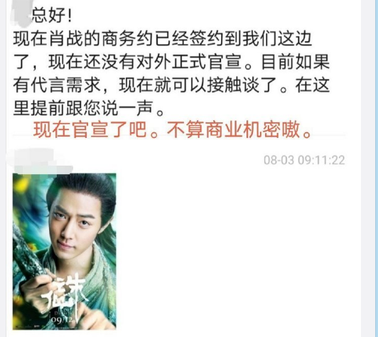 当然这次肖战的粉丝算是提到铁板了,因为这位金主的女儿真的是所言不虚,甚至为了证明自己,还把她和肖战团队的聊天记录,以及商业洽谈过程都放了出来。