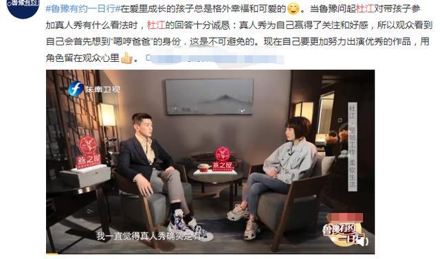 真人秀上我们看到杜江,回家第一件事就是亲媳妇,媳妇亲不够连儿子都靠边站。时常被小伙伴配画外音“明明是三个人的电影,嗯哼大王却不配拥有姓名”。对于真人秀上的 表现,杜江也坦承,上节目有时候是需要遵循一些效果的考量,所谓的“人设”有时候也是难以避免的,杜江的这份耿直也让人觉得很真。而更加真实的是,他想用更多的作品来诠释自己,而不是仅仅靠什么所谓的人设。