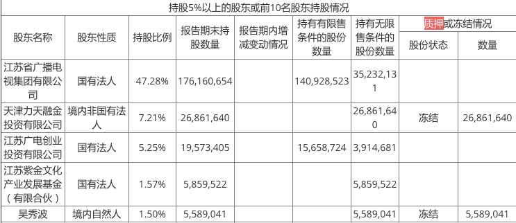 幸福蓝海2017年一季报显示,吴秀波为公司第7大股东,也是最大境内自然人,但吴秀波将所持的465.75万股全数质押。同年6月,幸福蓝海实施2016年度权益分配方案,分配后吴秀波持股数变更为558.9万股。