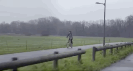 华梅骑着自行车,自在穿梭在两旁满是绿野的道路上,过得简单又充实。