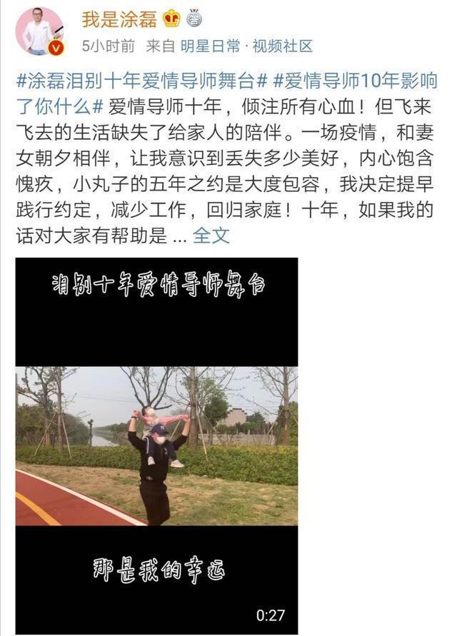 前不久,涂磊更是发文表示,因为最近无法出门,和妻女朝夕相伴,让自己意识到丢失多少美好,内心饱含愧疚,小丸子的五年之约是大度包容,所以他决定提早践行约定,减少工作,回归家庭!