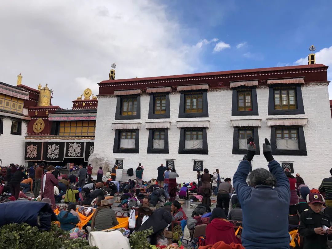 ▲大昭寺门前磕长头的藏民