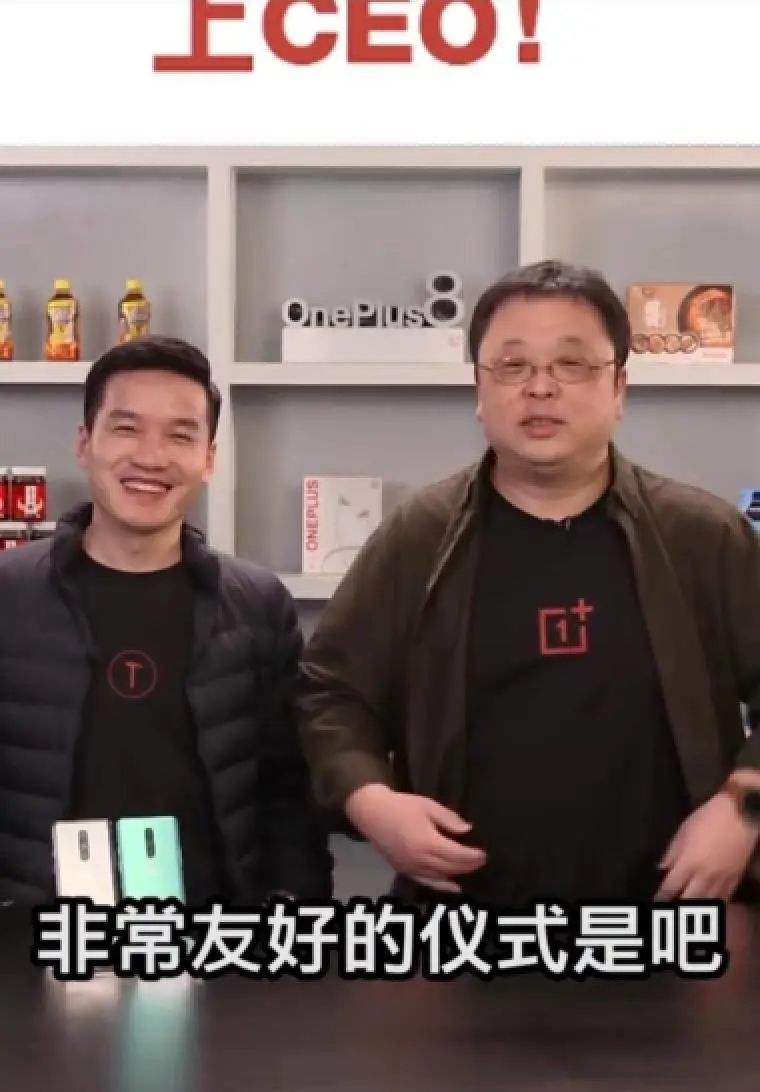 罗永浩与刘作虎互穿“一加”和“锤子”品牌T恤