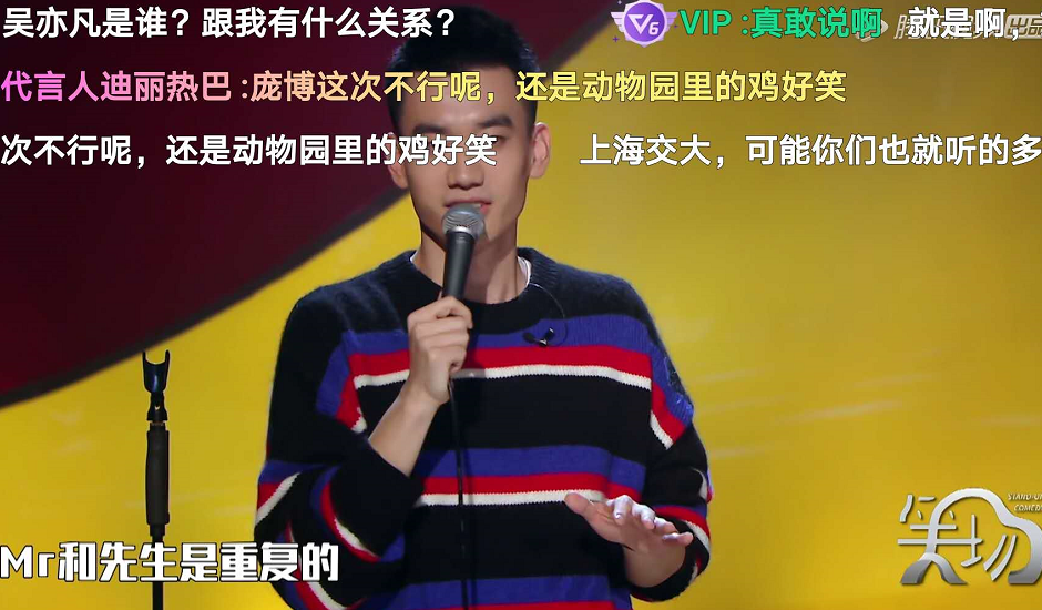 先问了下现场有没有吴亦凡粉丝,接着开始说起这个中西合璧的名字很有语病,不知道是不是国外也有很多粉丝,甚至圈了吴亦凡下面的评论。