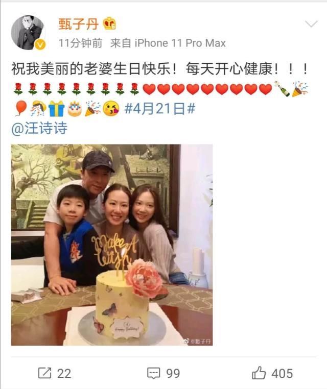 引子:4月22日,甄子丹在社交网站上为老婆汪诗诗庆生。甄子丹特意晒出了全家的合照,照片当中一双儿女出席,女儿颜值超高已经超过了妈妈。