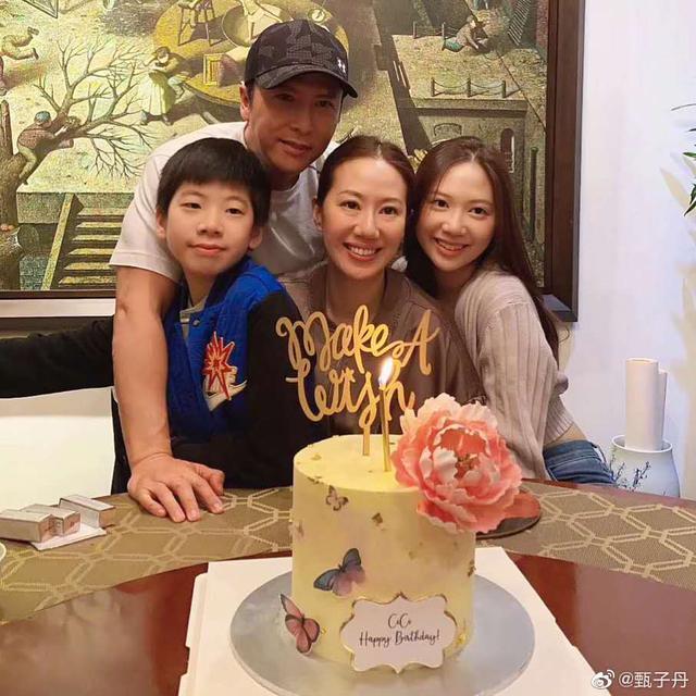 甄子丹晒全家合照为模特老婆庆生,年近六十老当益壮,女儿颜值比妈高