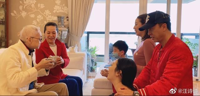 甄子丹穿着白色的短袖上衣,露出强壮的胳膊。虽然衣服遮住了甄子丹的好身材,但是还是能看到甄子丹若隐若现的肱三头肌线条。从照片看甄子丹的肩膀宽厚,没想到甄子丹年近六十身材依旧保持得这么好。汪诗诗坐在最中间笑容灿烂,她穿着一件咖啡色宽松的上衣,看起来十分淑女。儿女各在一侧,儿子长得很像甄子丹,而女儿完美遗传了妈妈的好基因,大眼睛十分水灵。