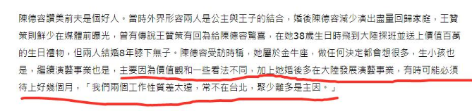 事后,有媒体专门向陈德容经纪公司求证,对方回应称“因为工作原因,聚少离多”。