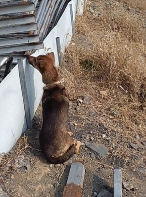狗狗每天忍受着饥饿,就为主人整天整夜地守着这个池塘,简直是最可怜的狗狗,甚至比流浪狗还可怜,流浪狗至少还有机会去找东西吃,但是在这里并没有任何东西给他可以吃的。