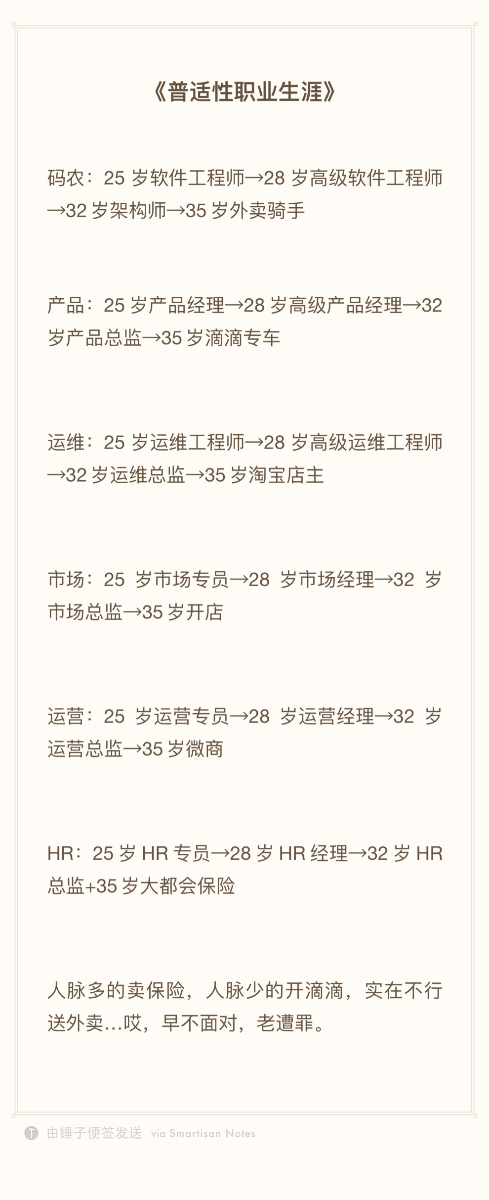 前几天有一个截图被大家广泛传播,标题是“普适性职业生涯”,内容如下: