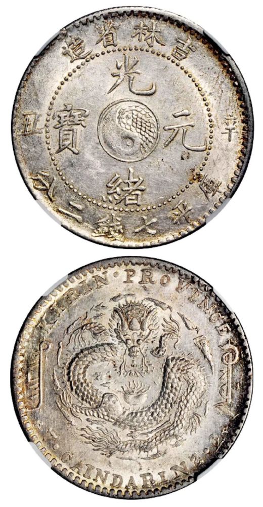 简介:1901年辛丑吉林省造光绪元宝库平七钱二分银币一枚,Y-183a.1/LM-536,龙鳞饱满,品相颇佳,资深钱币专家陈吉茂藏品,NGC-ACAB MS62