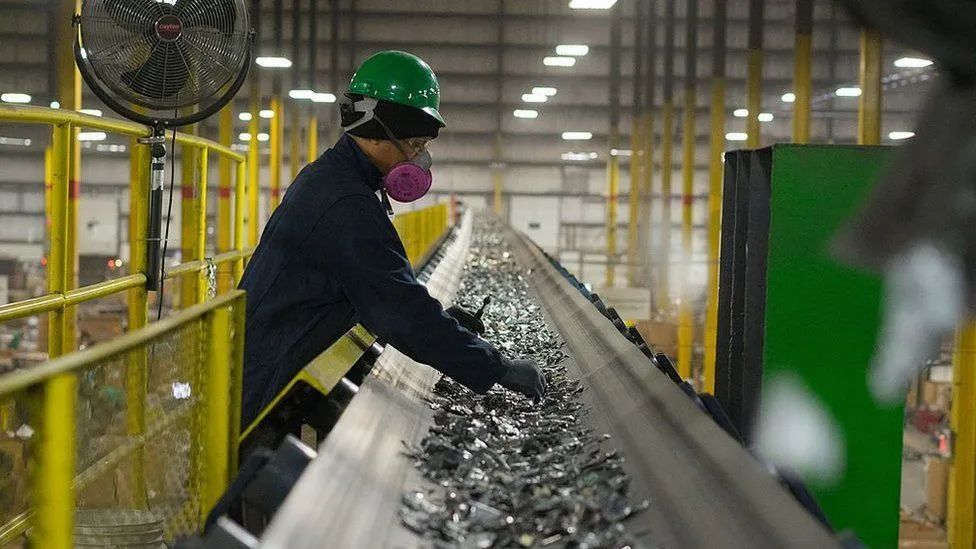 日本的回收工厂对电子垃圾配件进行处理(图源:BBC)