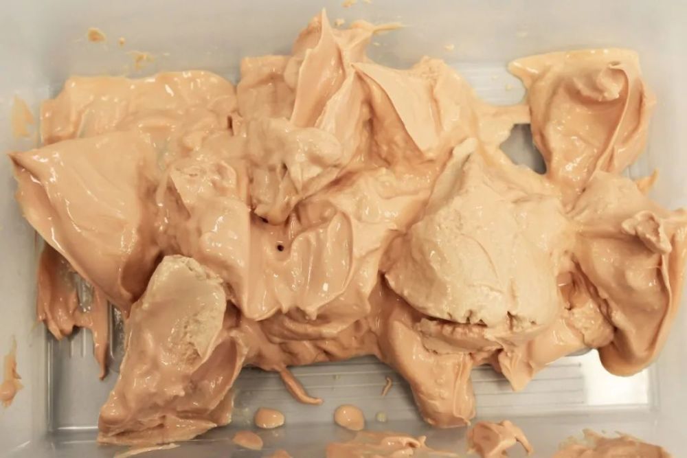 加入微生物后,溶液中的沉积物有了香草冰淇淋状的质地