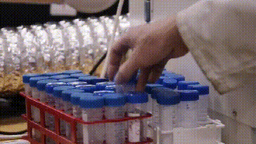 接下来,用离心机将富含金的微生物甩出,就得到了紫色粘液。