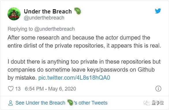 网络情报公司 Under the Breach 在黑客论坛上看完这些数据后,也认为没什么好担心的。但也需要警惕,私有API密钥或密码会意外地落在某些私有存储库中。