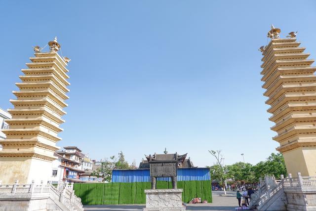 妙湛寺始建于元代至元二十七年,历经5年时间建成。可惜不过短短几十年便毁于水涝。于元泰定二年迁址于如今的官渡古镇中央,后毁于地震,唯有东塔保留至今。明天顺二年妙湛寺再一次得以重建,殿前的金刚宝塔便是妙湛寺重建时所筑浮图一规,得以留存至今。
