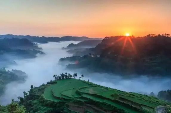 “中国最美云雾之乡”,7、8月骑龙坳附近的沟谷即是云雾缭绕,宛若人间仙境。