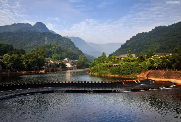 四川十大古镇之一,背靠峨眉、瓦屋仙山,侯家山、玉屏山拱卫左右,杨村河、花溪河拥镇而过,向北流向美丽富饶的锦绣花溪坝。
