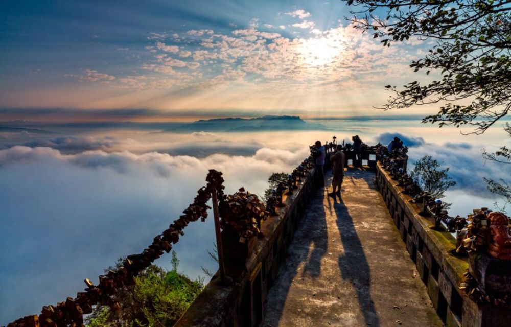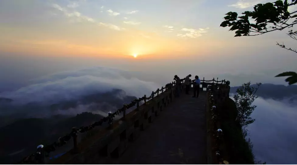川东名胜“巴渝十二景”之一,景区内丹霞地貌、雄奇壮美。人们置身山巅阳桥,观云卷云舒,宛如步入人间仙境。