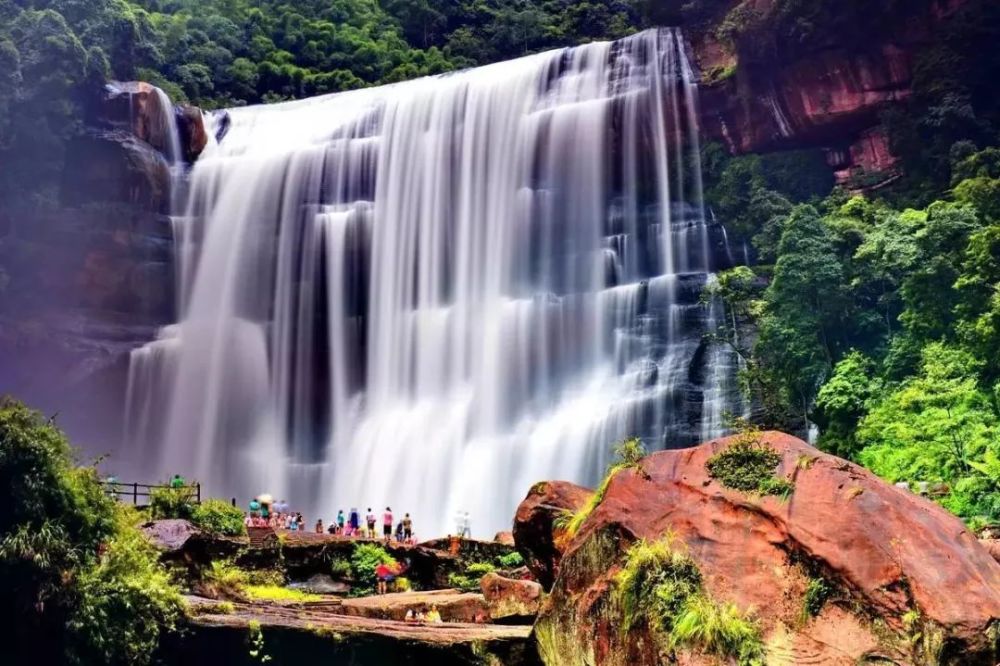 这里有全国面积最大的丹霞地貌,雄奇、险峻;这里还有我国丹霞地貌最大的瀑布,不含杂质,不加修饰,飞流直下,壮阔而不失秀美。