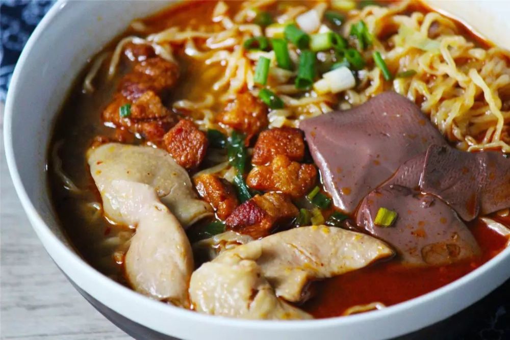 细面重碱,宽汤红油,臊子考究,入嘴劲道爽口而后回味绵长。