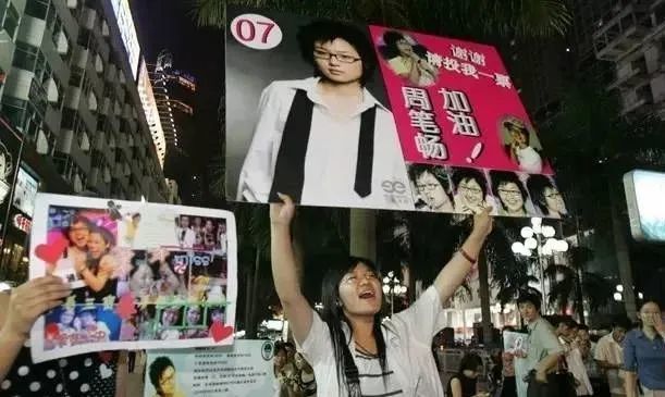 李宇春的粉丝叫“玉米”,周笔畅的粉丝叫“笔亲”,而张靓颖的粉丝则是“凉粉”,黑白手机上每条1毛的支持短信,决定着选手们的去留。决赛之夜,全国超过2亿人同时收看现场直播的记录至今未被打破。