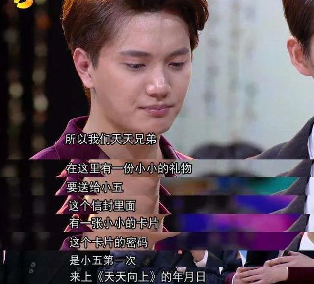 也是在这一年,“小五”金圣恩回韩国服兵役,在他最后一次主持时,汪涵递给了他一张:因为小五家境不好,汪涵担心他当兵期间,家庭没有收入。汪涵拍拍小五的肩膀告诉他:的密码,是你第一次来《天天向上》时的日子。