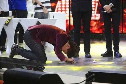 此时的小五早已泪流满面,跪在地上以韩国跪拜礼感谢汪涵。