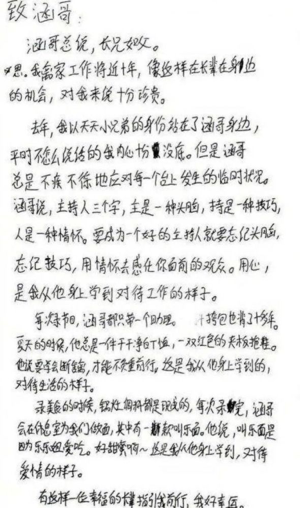 后来,王一博还给汪涵写过一封信,在信里,他说“长兄如父,有这样一位幸福的长辈指引我前行,我好幸运。”