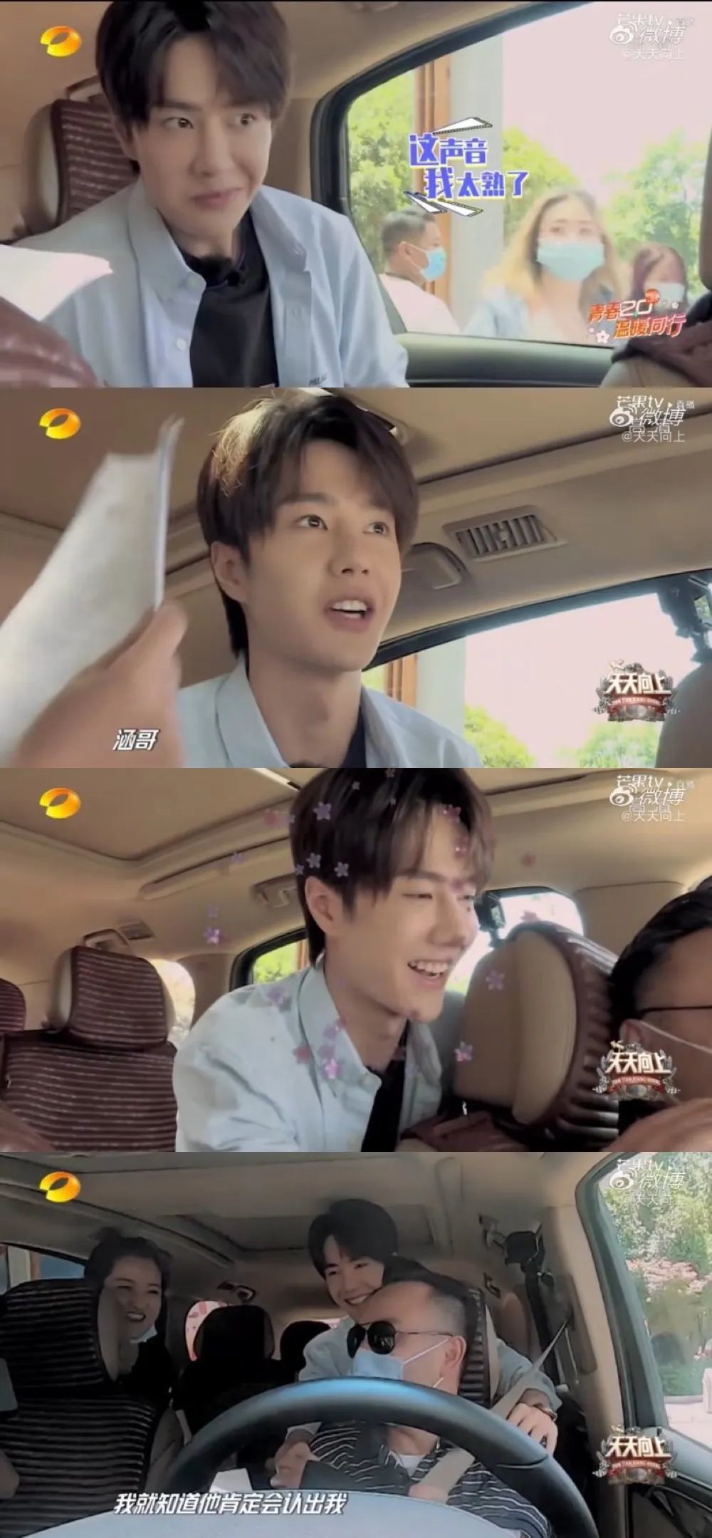 2020年5月17日,在一档节目中,汪涵乔装打扮成司机迎接王一博“复工”。没想到车还没发动,王一博就单靠一个哈欠认出了坐在驾驶位上的汪涵。汪涵握住王一博的手:“我就说嘛,我的一博弟弟怎么会认不出我来。”