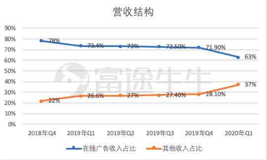 这一点可以从百度一季度营收结构上得到验证。百度「其他收入」占比37%,大幅提升,「其他收入」类别包括爱奇艺会员收入、小度助手、Apollo智能交通、云服务收入。