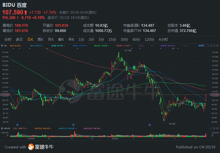 其实,从百度的股价上来看,去年四季度开始,百度利润复苏,股价也一度从90左右反弹到140多,后面因为担心疫情对广告市场的冲击,百度股价一度跌至80左右。
