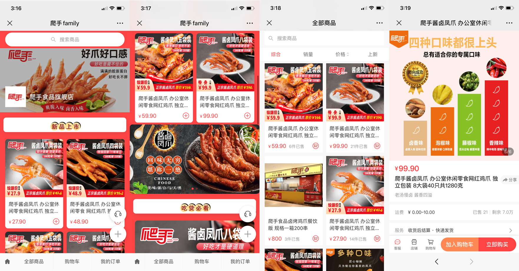 可以看出,爬手食品与其它零食品牌的一个差异是聚焦在单品上。聚焦“鸡爪”单品的策略能否成功,还要交给市场去验证。