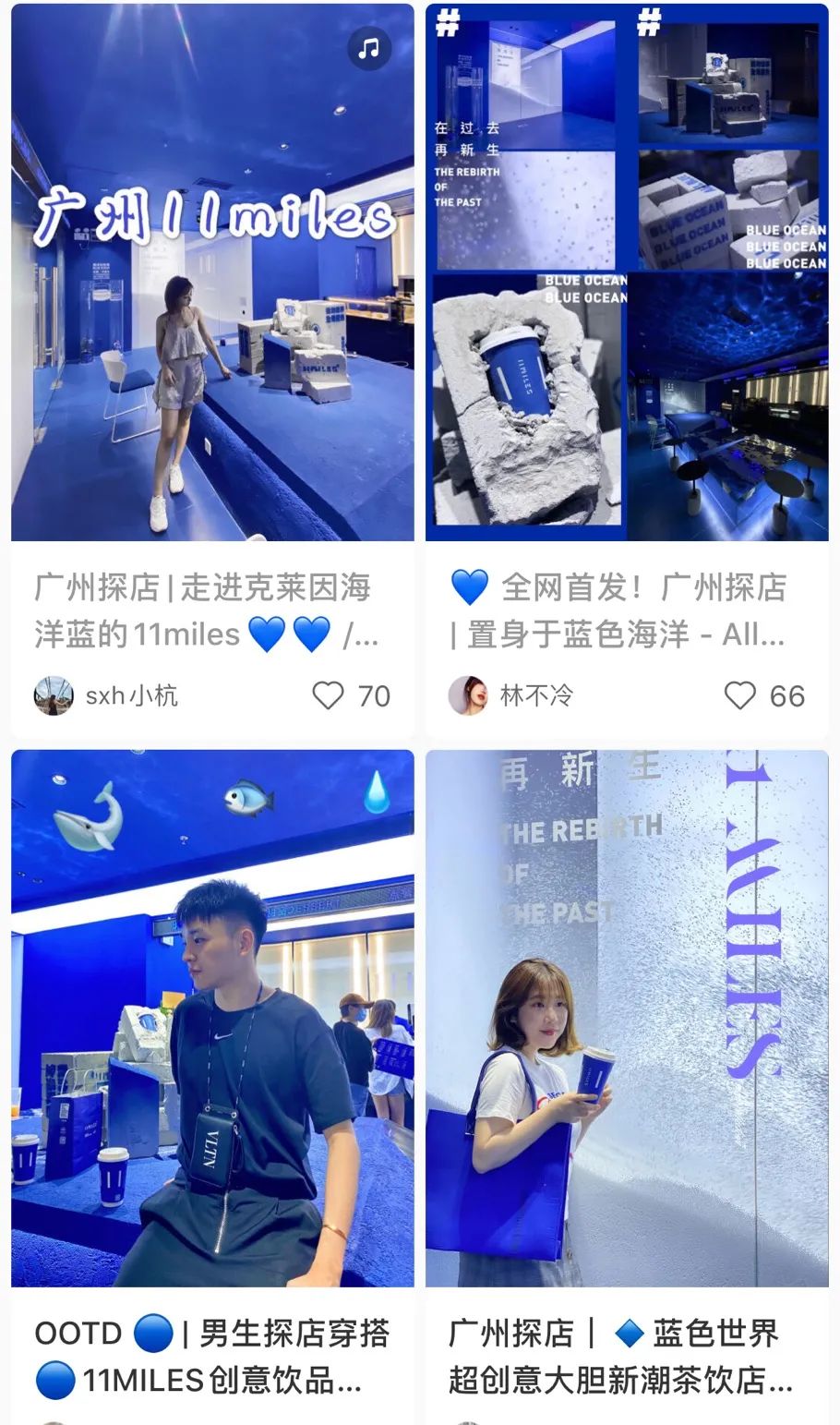 佘越的11miles新店刚刚在广州开业,小红书里晒图打卡的不在少数。这家店全蓝的风格让人眼前一亮。在设计理念的打造上,追求环保、追求装置变换的设计感,都有立刻抓人的效果。