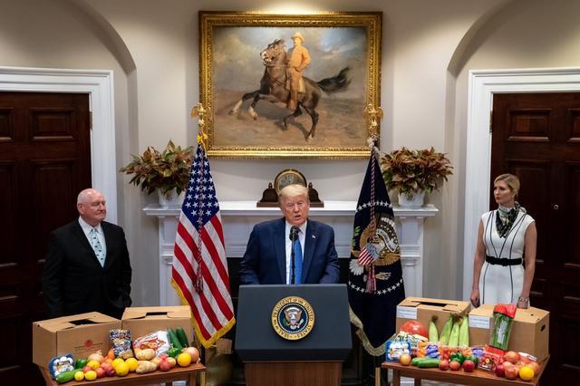 据美国媒体5月19日报道,白宫在罗斯福厅举办了一个关于支持疫情期间食品供应链的活动,身为白宫高级顾问的伊万卡陪同特朗普出席。