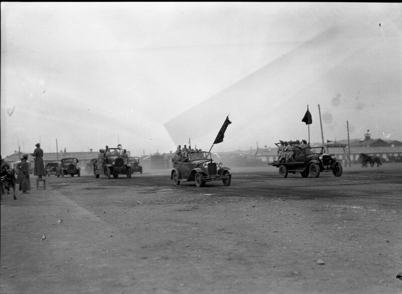 上世纪三十年代的蒙古乌兰巴托,一场阅兵式在草原上举行。