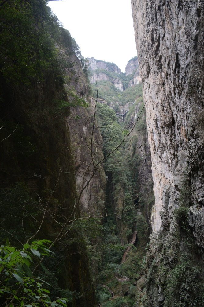 说了这么多,除了上面所说的那些名山大川以外,国内还有一些名气不是很大的景点,同样也有着类似“一线天”这样的自然奇观。在浙江温州著名国家级旅游风景区楠溪江的沿途附近,就有一条藏于山谷之中的山涧,它足足有一公里长,两侧都是高达300多米的悬崖峭壁,仅露出一线蓝天,这个地方就是所谓的“崖下库”!